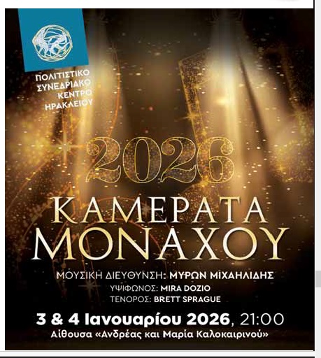 Bilder und Presseartikel zum Samstag 4. und Sonntag 5. Januar 2025, 21:00 Uhr Ein weiterer großer Moment für Heraklion ist das Neujahrskonzert mit der Camerata München am Samstag, den 4. und Sonntag, den 5. Januar 2025, jeweils um 21:00 Uhr, im Saal "Andreas und Maria Kalokairinou". Das renommierte deutsche Kammerorchester Camerata München wird unter der Leitung des international bekannten Dirigenten Myron Michailidis auftreten.